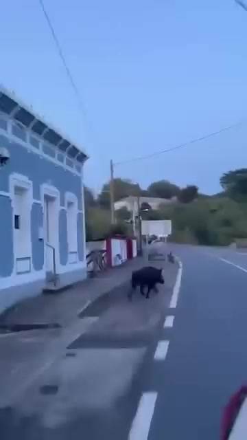 “Un jabalí salvaje camina tranquilamente por las calles de Santa Cruz, barrio de Oleiros, provincia de A Coruña. El animal no causó incidentes durante ...”