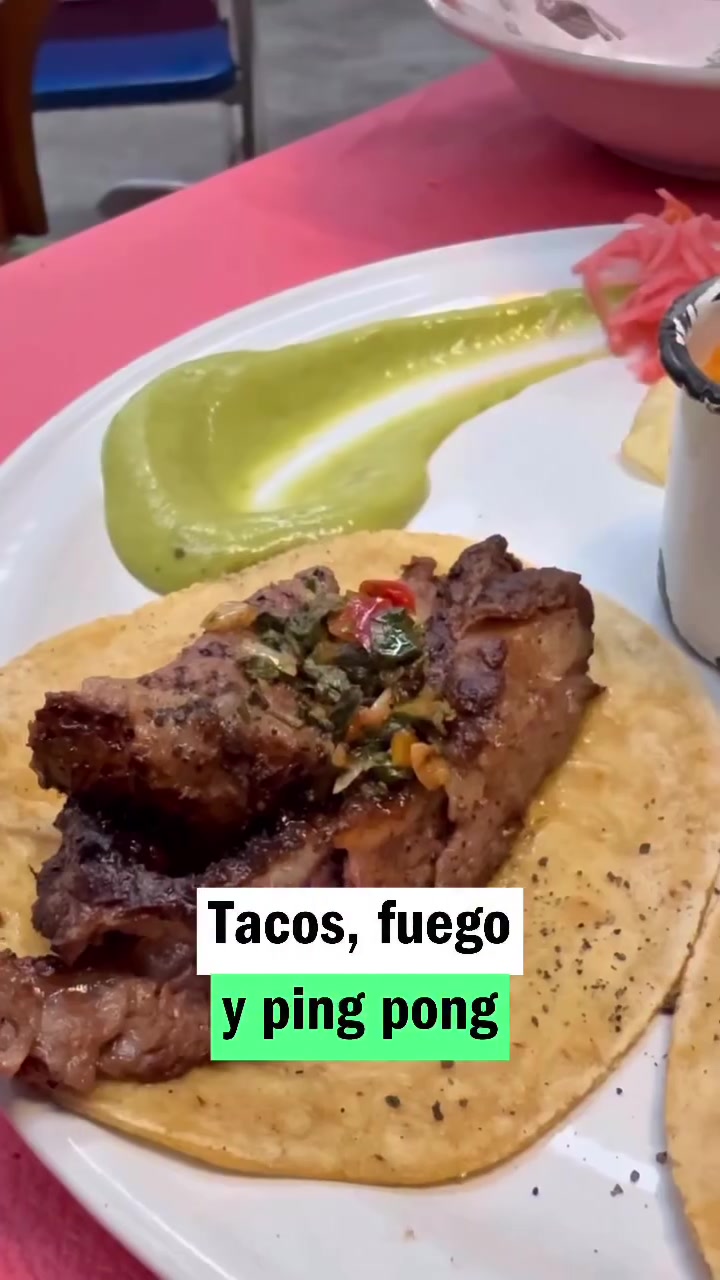 “Un club en la Juarez con taquitos de picana y mesas de tenis de mesa, ideal para ir en grupo | ig @timeoutmexico”