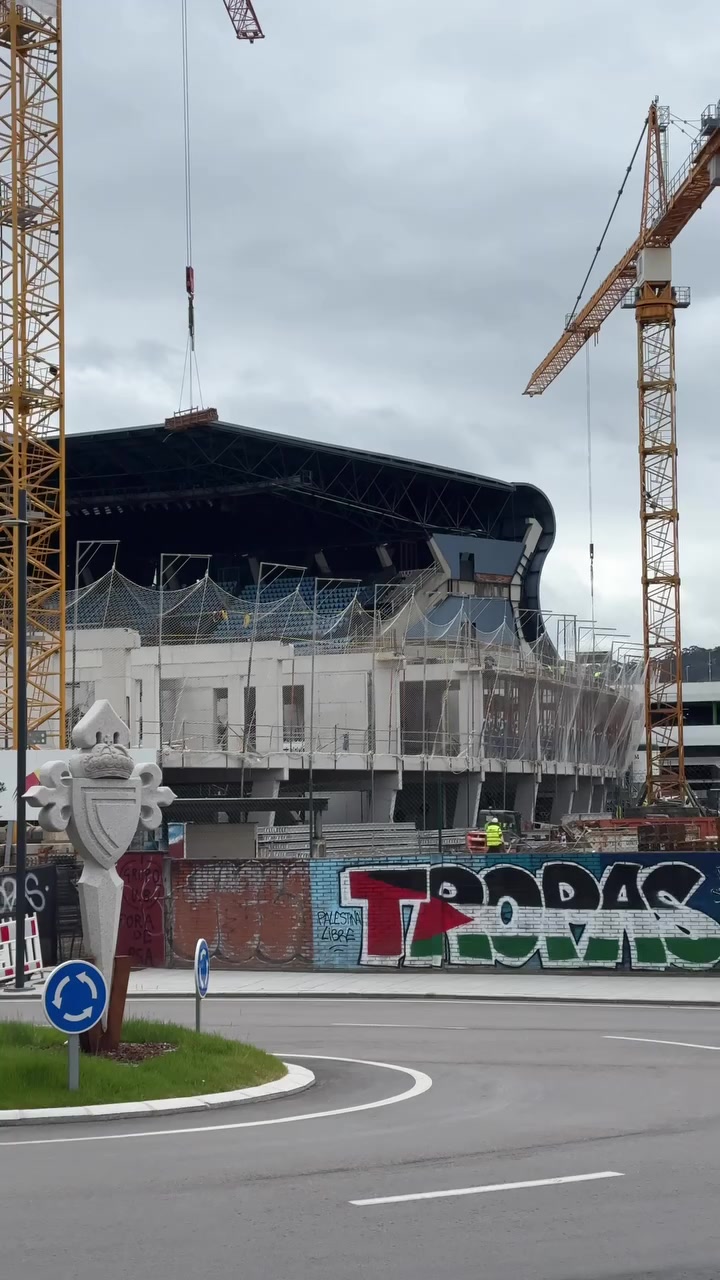 “Avances en la construcción de la grada de Gol en el estadio de Balaídos a una semana de los cuartos de final de la Europa League. La estructura estará...”