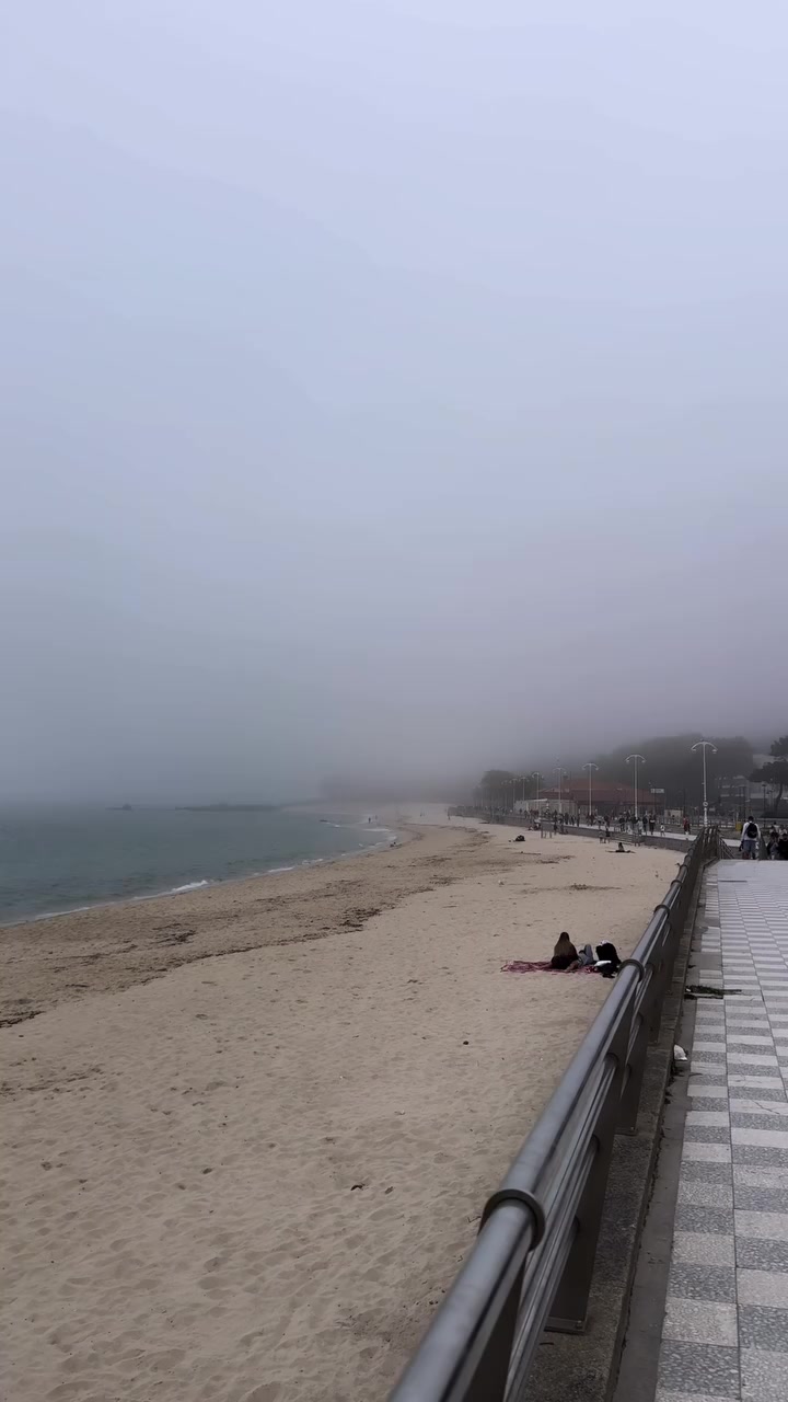 “La playa de Samil se cubre de niebla esta tarde para cerrar el domingo. Vistas espectaculares desde una de las mejores playas de Vigo.”